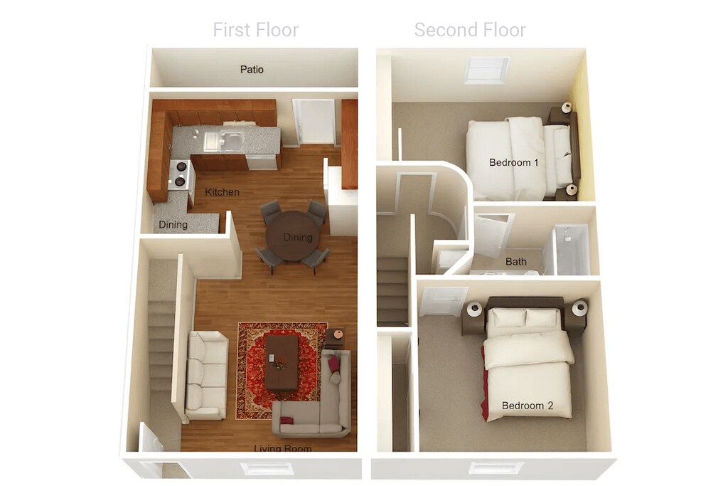 2 Dormitorios, 1.5 Baños, 1140 pies²Disponible AhoraGalería del Modelo