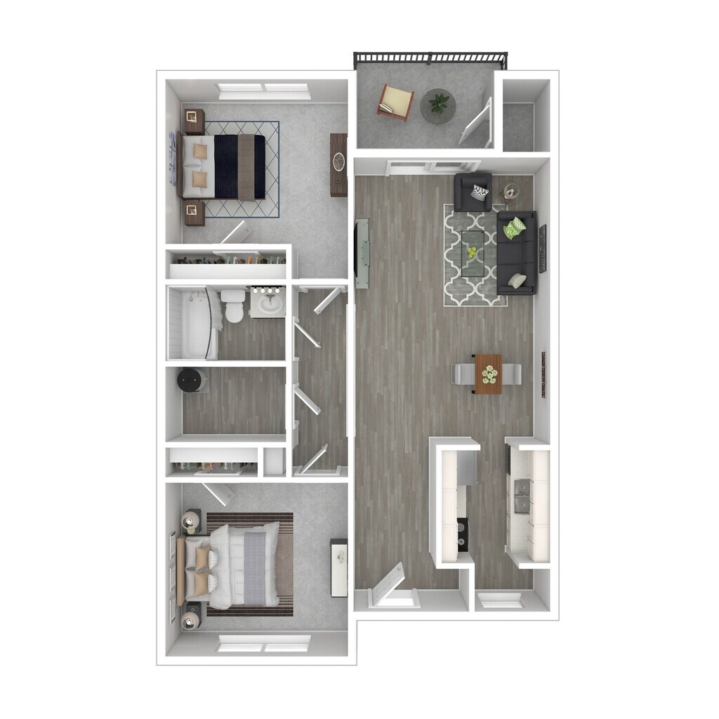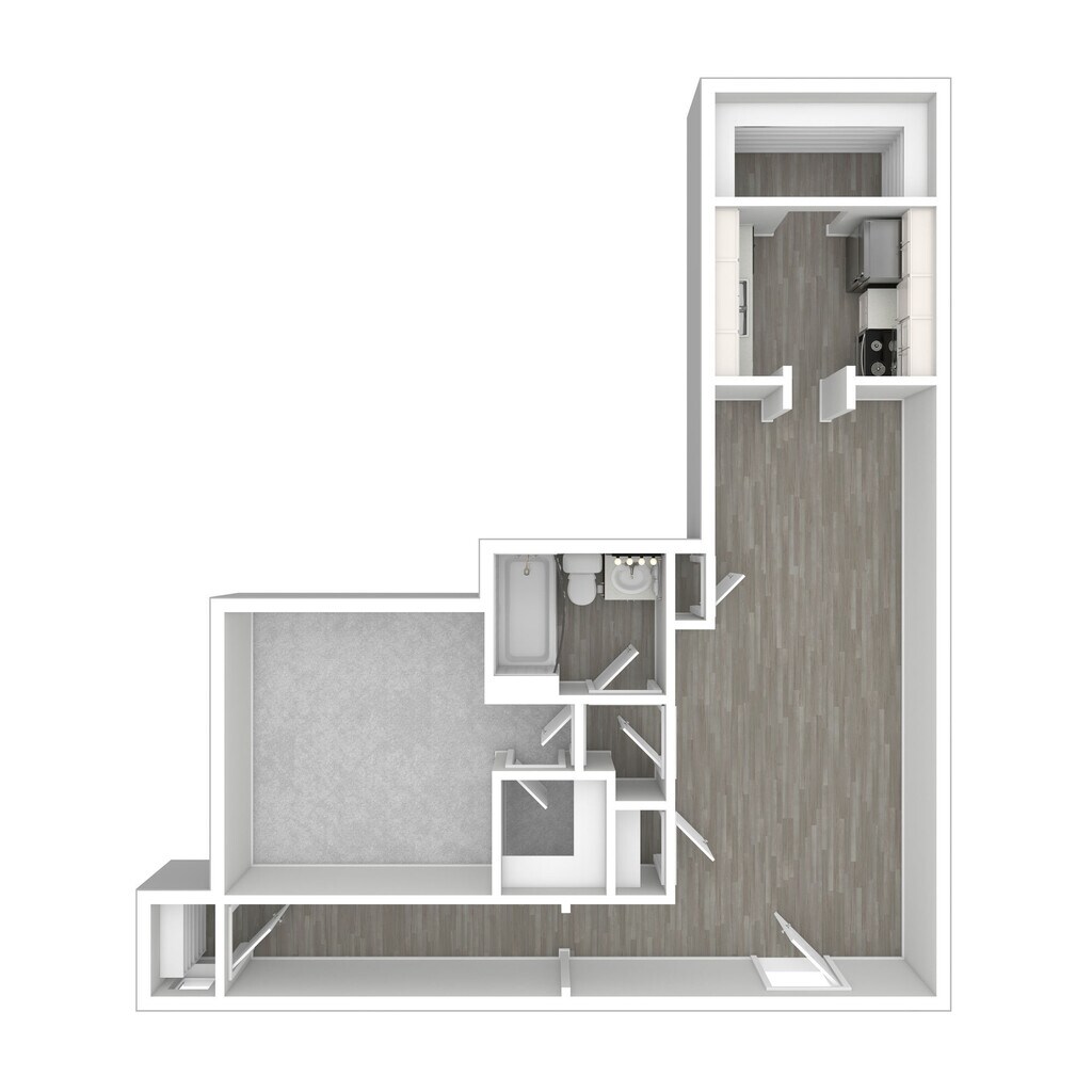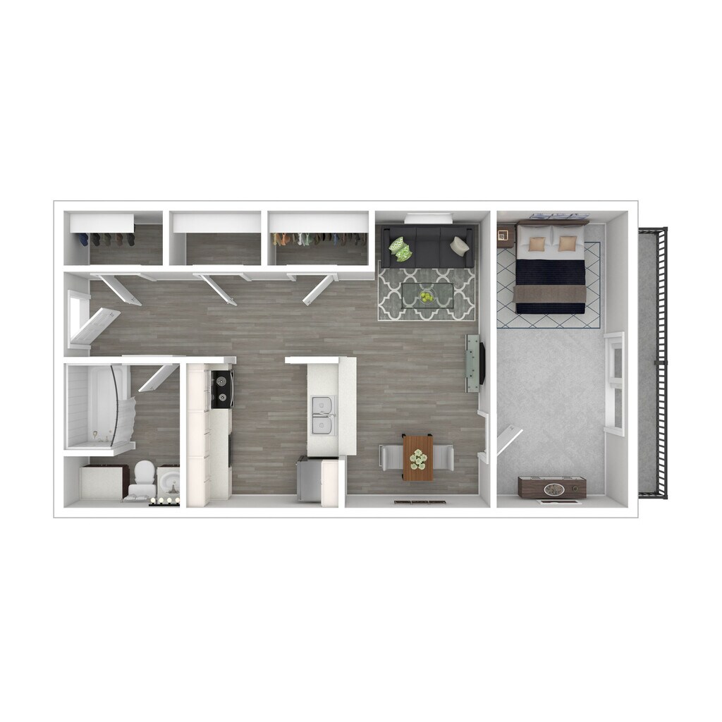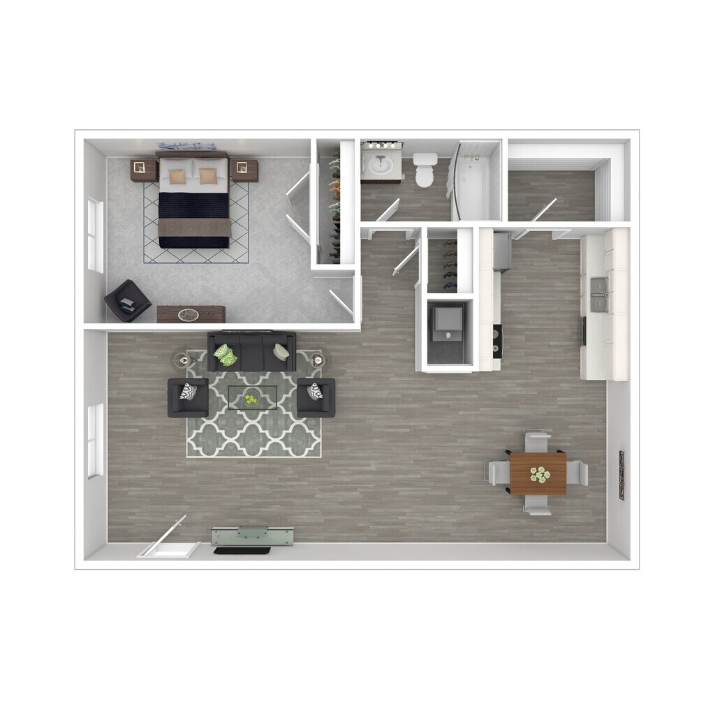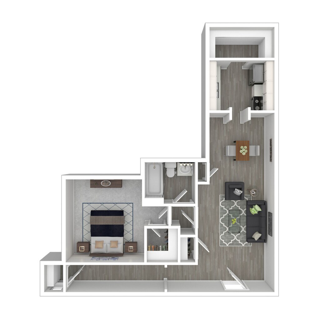 1 Dormitorio, 1 Baño, 850 pies²Disponible AhoraGalería del Modelo