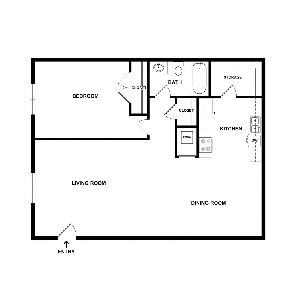 1 Dormitorio, 1 Baño, 600 pies²Galería del Modelo