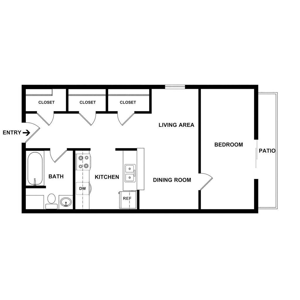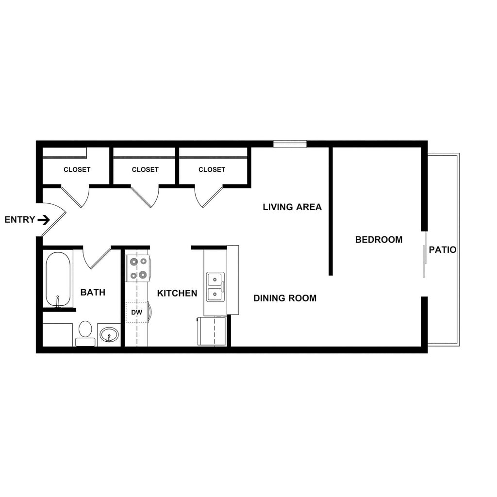 Modelo de apartamento: A1Estudio, 1 Baño, 600 sq ftDisponible Ahora![]()