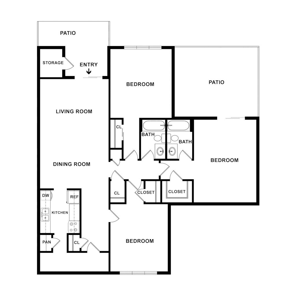 Modelo de apartamento: A3P1 Dormitorio, 1 Baño, 850 sq ftNo Disponible![]()