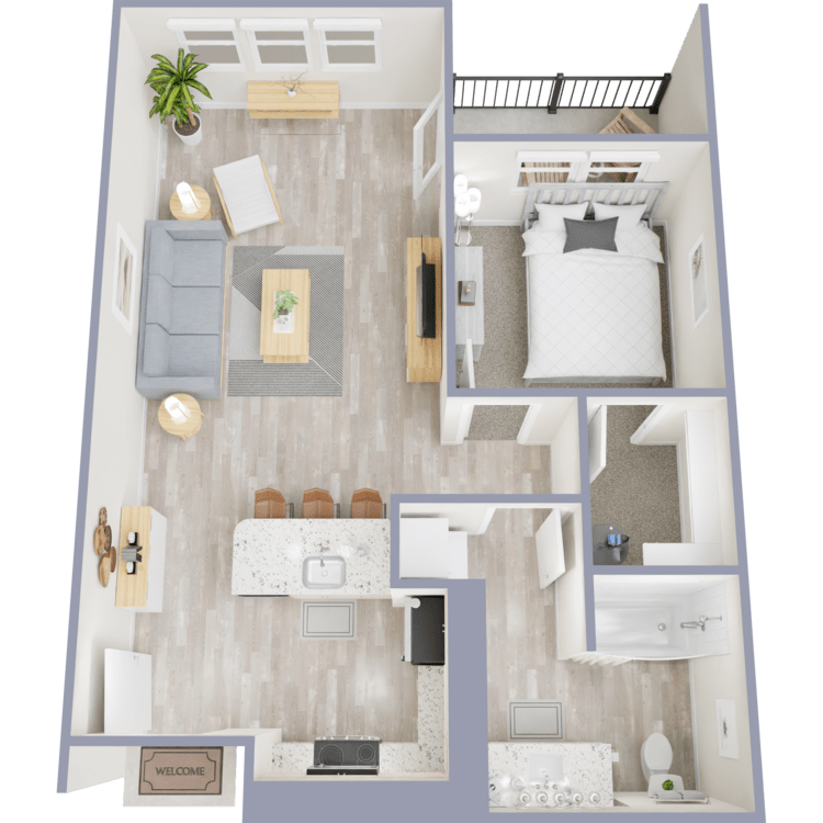 1 Dormitorio, 1 Baño, 744 pies²Galería del Modelo