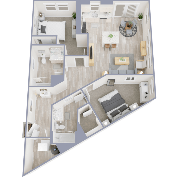 2 Dormitorios, 2 Baños, 1206 pies²El más grandeEsta opción tiene las unidades más grandes para este modeloGalería del Modelo