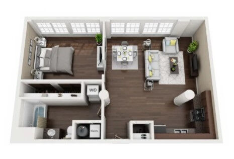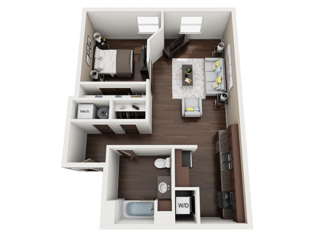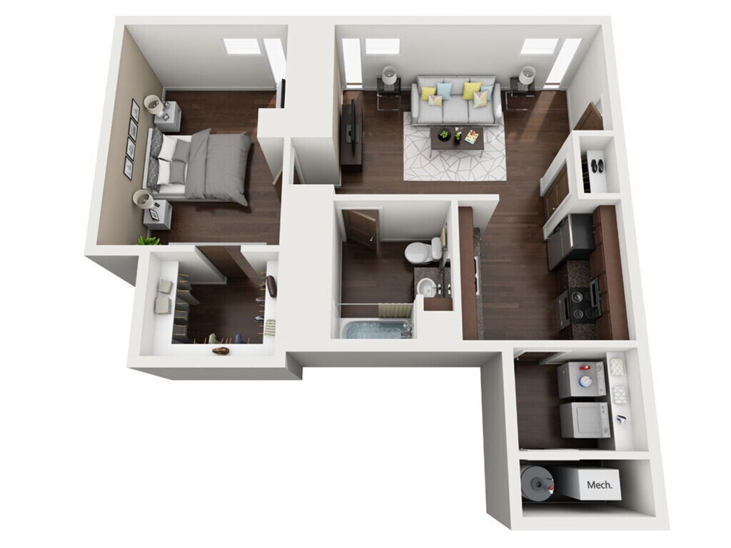Modelo de apartamento: Scout$1,3001 Dormitorio, 1 Baño, 726 sq ftNo Disponible![]()