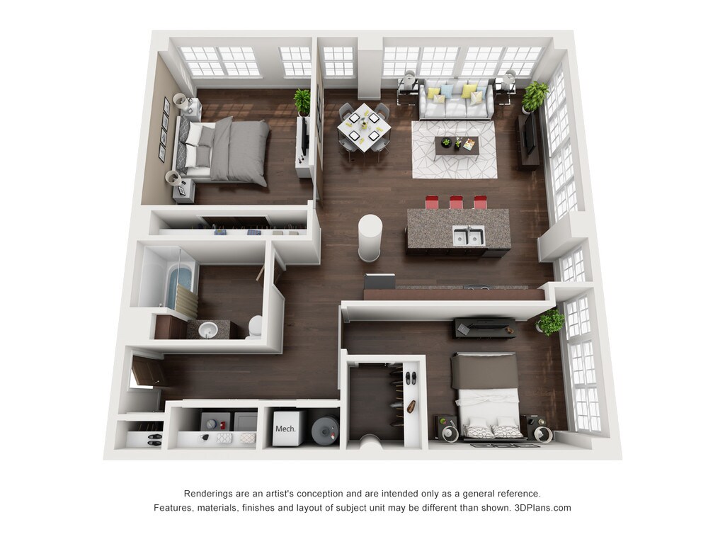 Modelo de apartamento: Berne$1,3001 Dormitorio, 1 Baño, 747-789 sq ftNo Disponible![]()