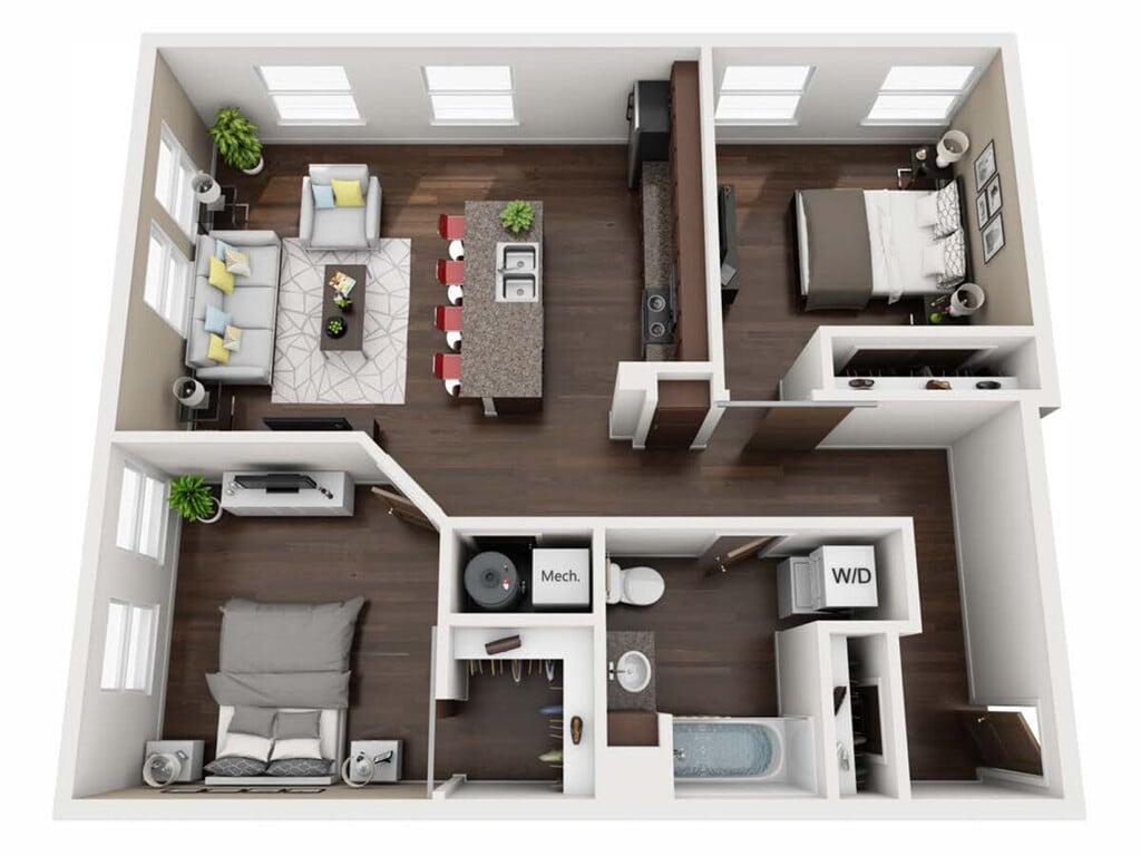 2 Dormitorios, 1 Baño, 1163 pies²El más grandeEsta opción tiene las unidades más grandes para este modeloGalería del Modelo
