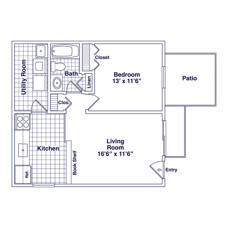 Modelo de apartamento: One Bedroom, One Bath (Ad)1 Dormitorio, 1 Baño, 547 sq ftNo Disponible![]()