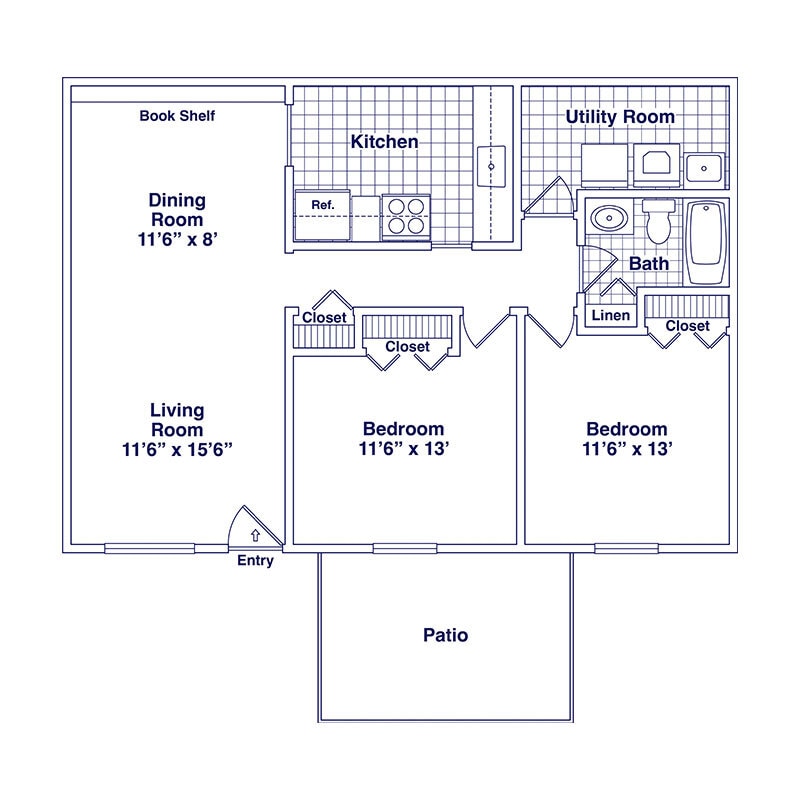 Two Bedroom, One Bath (Bd) - Plano 1 Two Bedroom, One Bath (Bp)