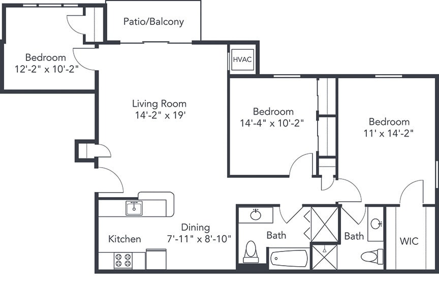 Modelo de apartamento: One Bedroom ResidentialDesde $1,1751 Dormitorio, 1 Baño, 753-818 sq ftDisponible Ahora![]()