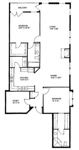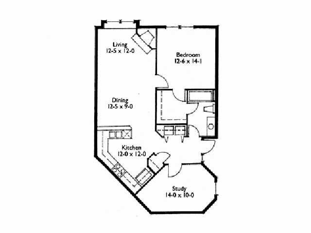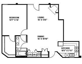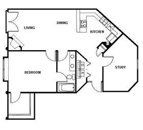 Modelo de apartamento: The Duke 961b1 Dormitorio, 1 Baño, 961 sq ftNo Disponible![]()