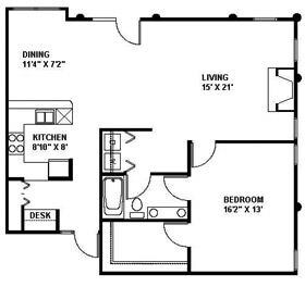 Modelo de apartamento: The Duke 961a1 Dormitorio, 1 Baño, 961 sq ftDisponible Ahora![]()