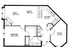 1 Dormitorio, 1 Baño, 829 pies²Galería del Modelo