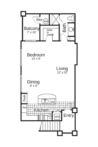 1 Dormitorio, 1 Baño, 624 pies²Disponible AhoraGalería del Modelo