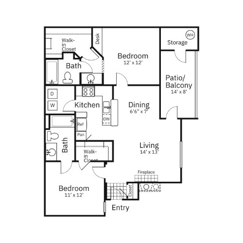 Modelo de apartamento: A1Desde $1,1751 Dormitorio, 1 Baño, 624 sq ftDisponible Ahora![]()