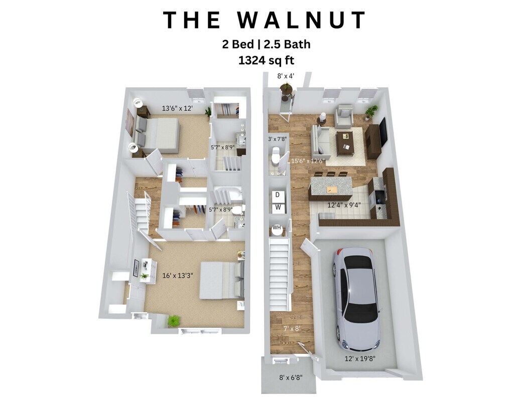 Modelo de apartamento: The Walnut2 Dormitorios, 2.5 Baños, 1324 sq ftDisponible January 27, 2026![]()
