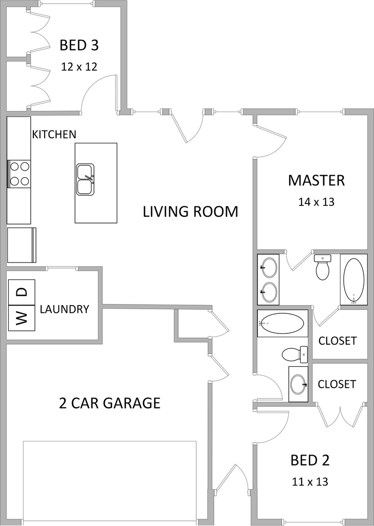3 Dormitorios, 2 Baños, 1355 pies²Galería del Modelo
