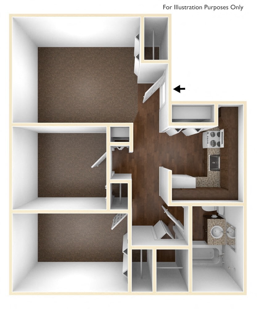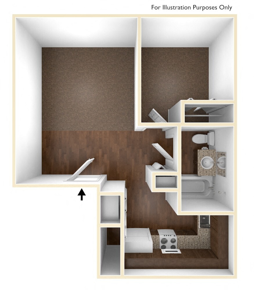 Modelo de apartamento: 1 BedroomLlame para Precios1 Dormitorio, 1 Baño, 564 sq ftNo DisponiblePlanosFotos![]()