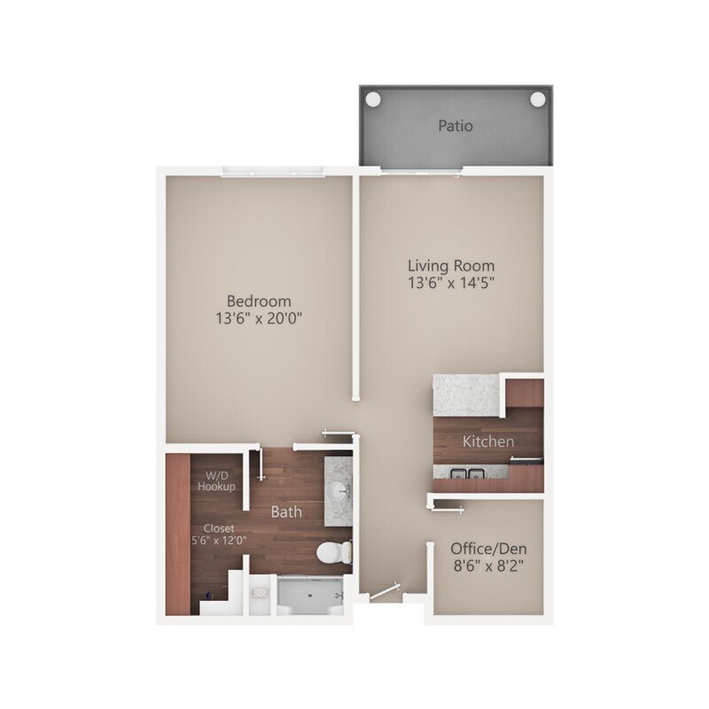 Modelo de apartamento: WalnutEstudio, 1 Baño, 520 sq ftNo Disponible![]()