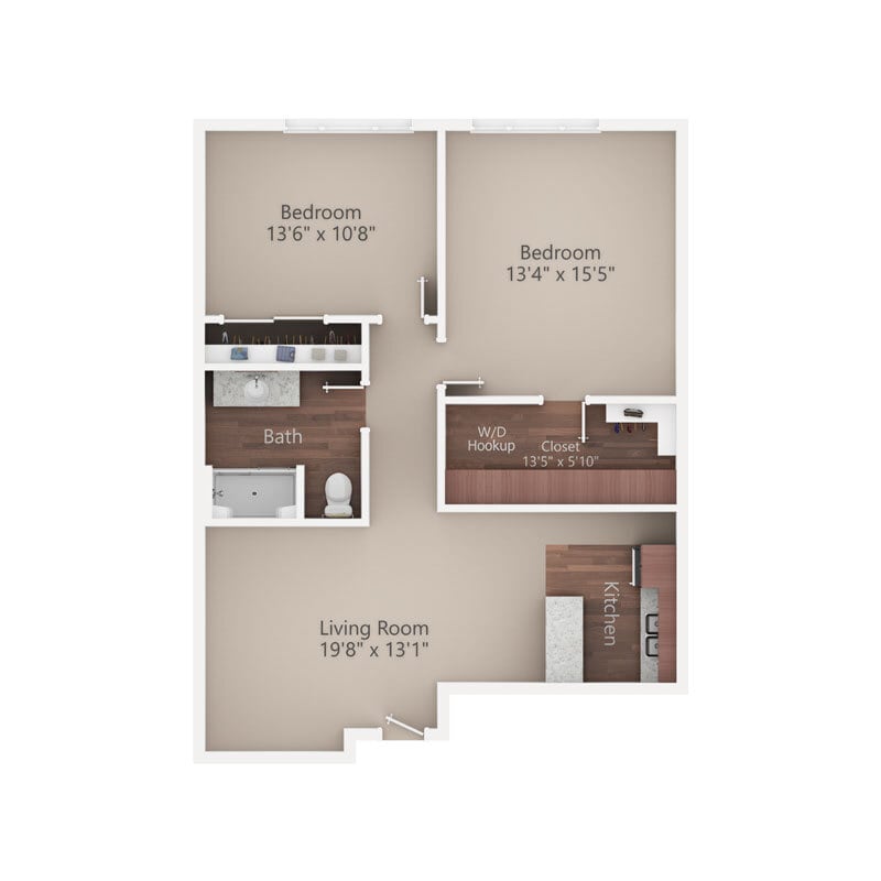 2 Dormitorios, 2 Baños, 969 pies²Galería del Modelo