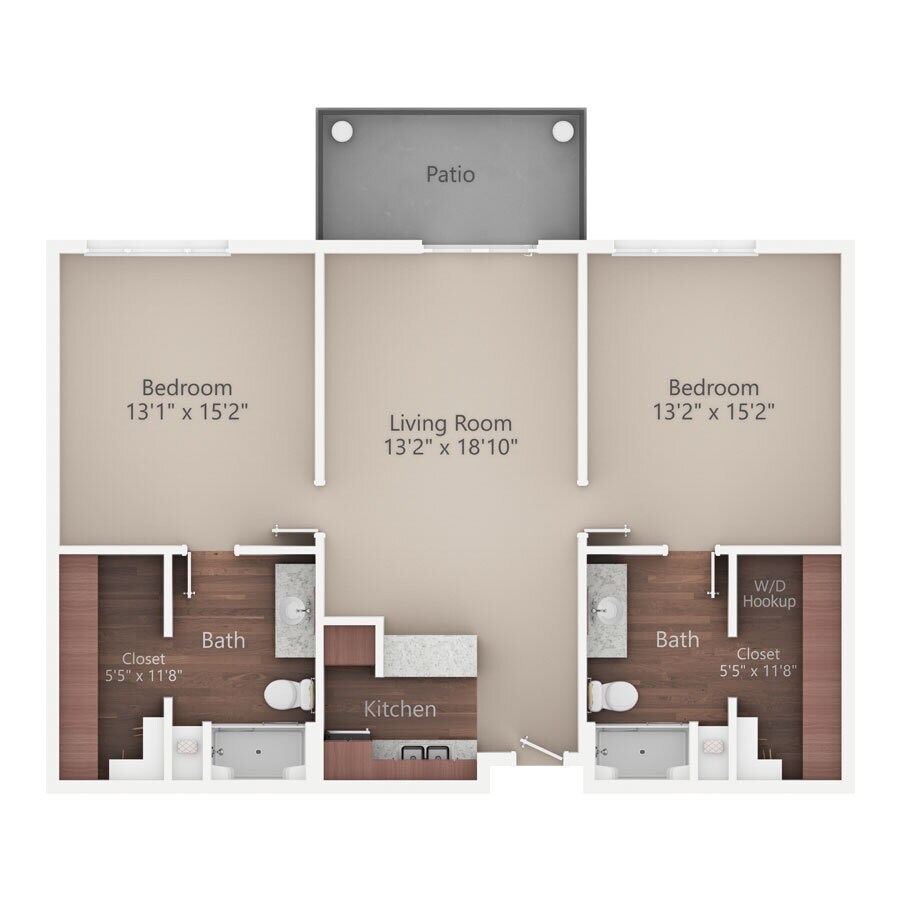 Modelo de apartamento: River Birch2 Dormitorios, 2 Baños, 1152 sq ftNo Disponible![]()