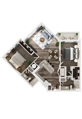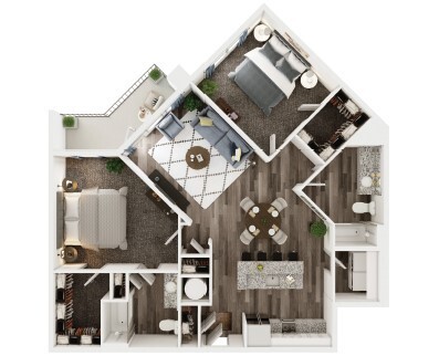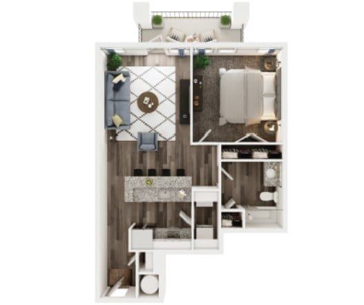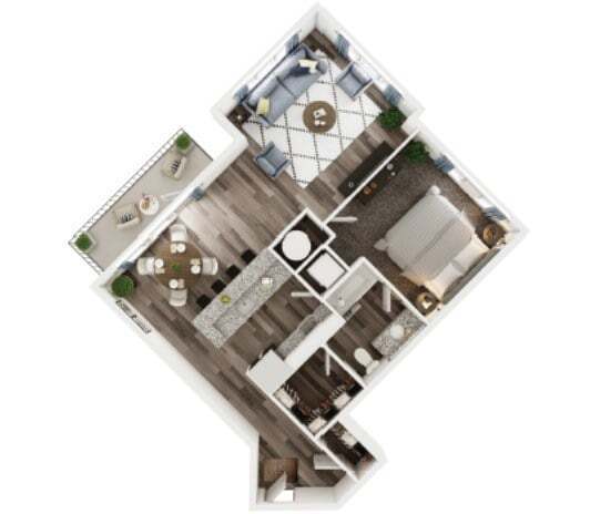 Modelo de apartamento: 1 Bedroom 1 Bath Corner BDesde $1,4691 Dormitorio, 1 Baño, 887 sq ftDisponible Ahora![]()