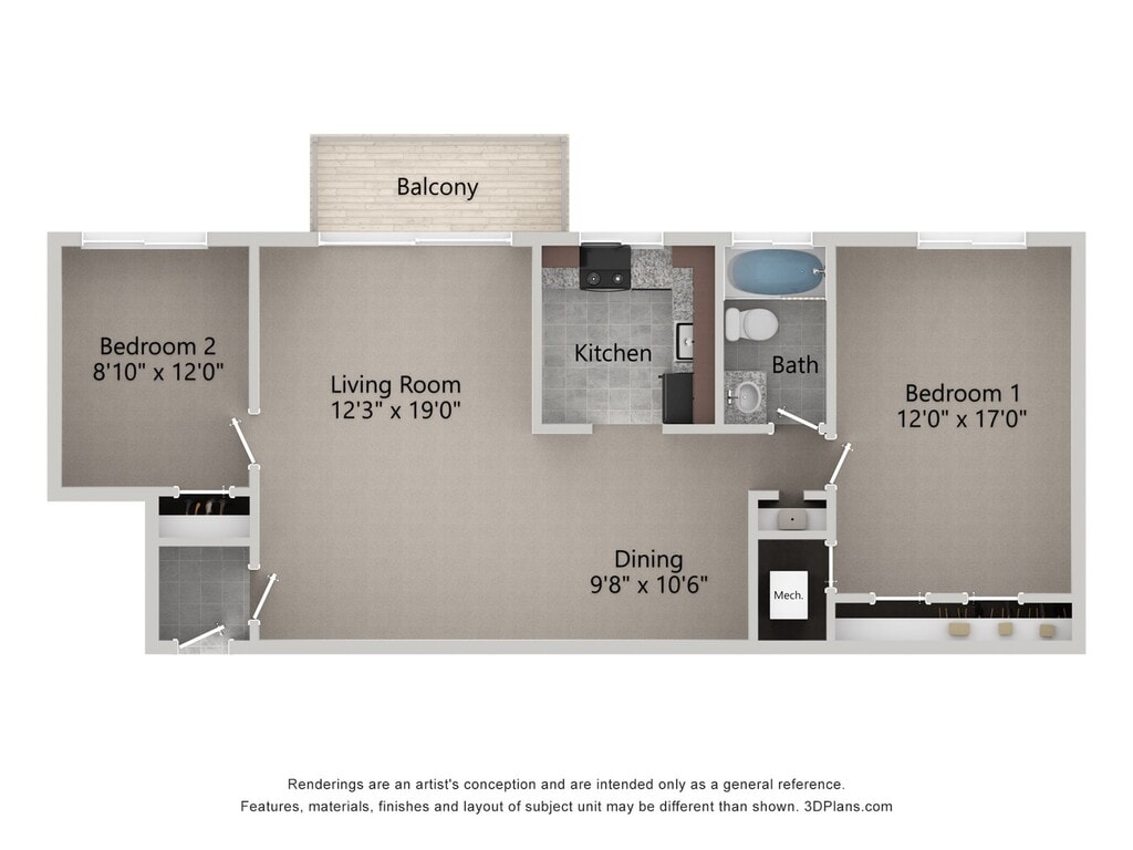 2 Dormitorios, 1 Baño, 859 pies²Disponible AhoraGalería del Modelo