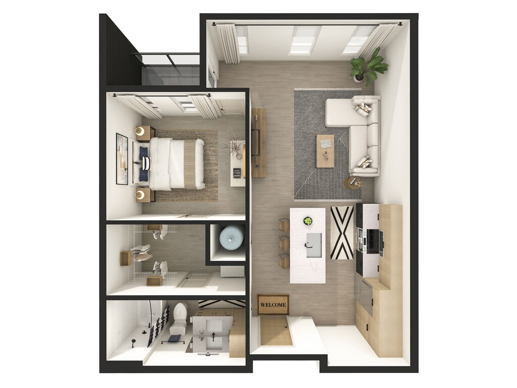 Modelo de apartamento: Elm 1.1Desde $1,5491 Dormitorio, 1 Baño, 774 sq ftDisponible Ahora![]()