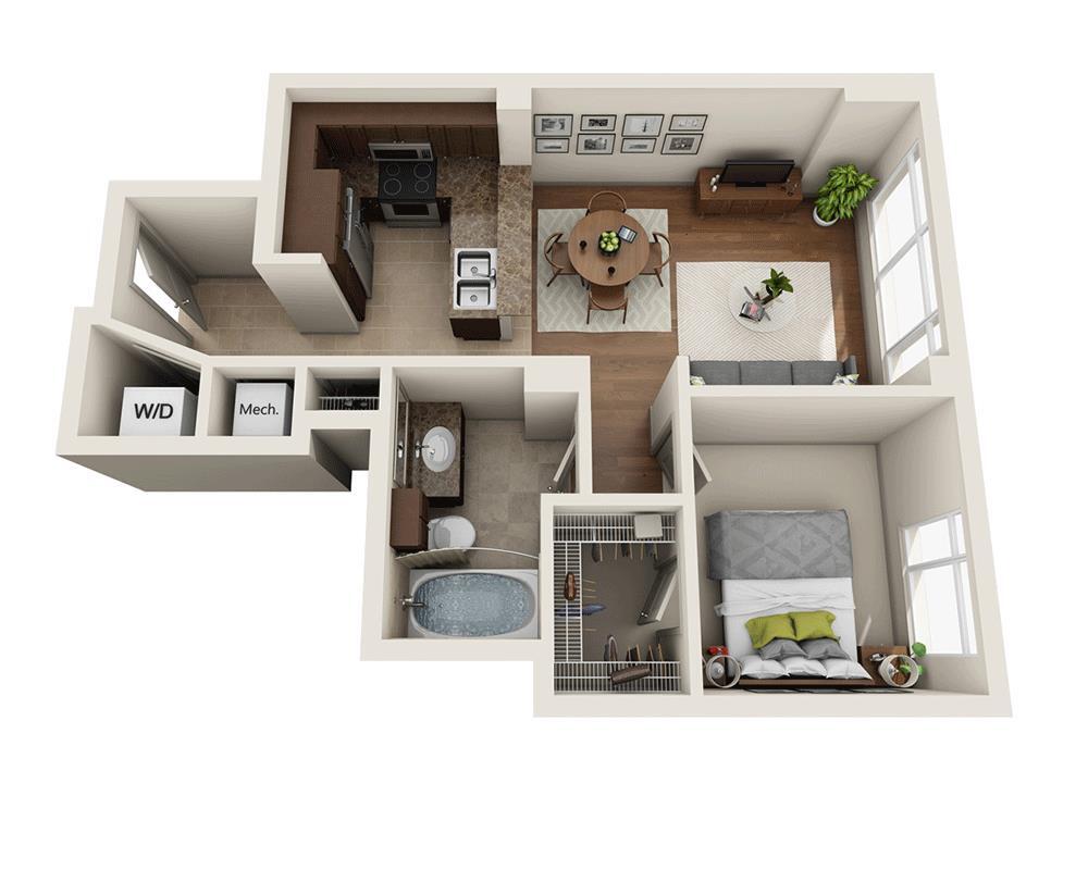 1 Dormitorio, 1 Baño, 797 pies²Galería del Modelo