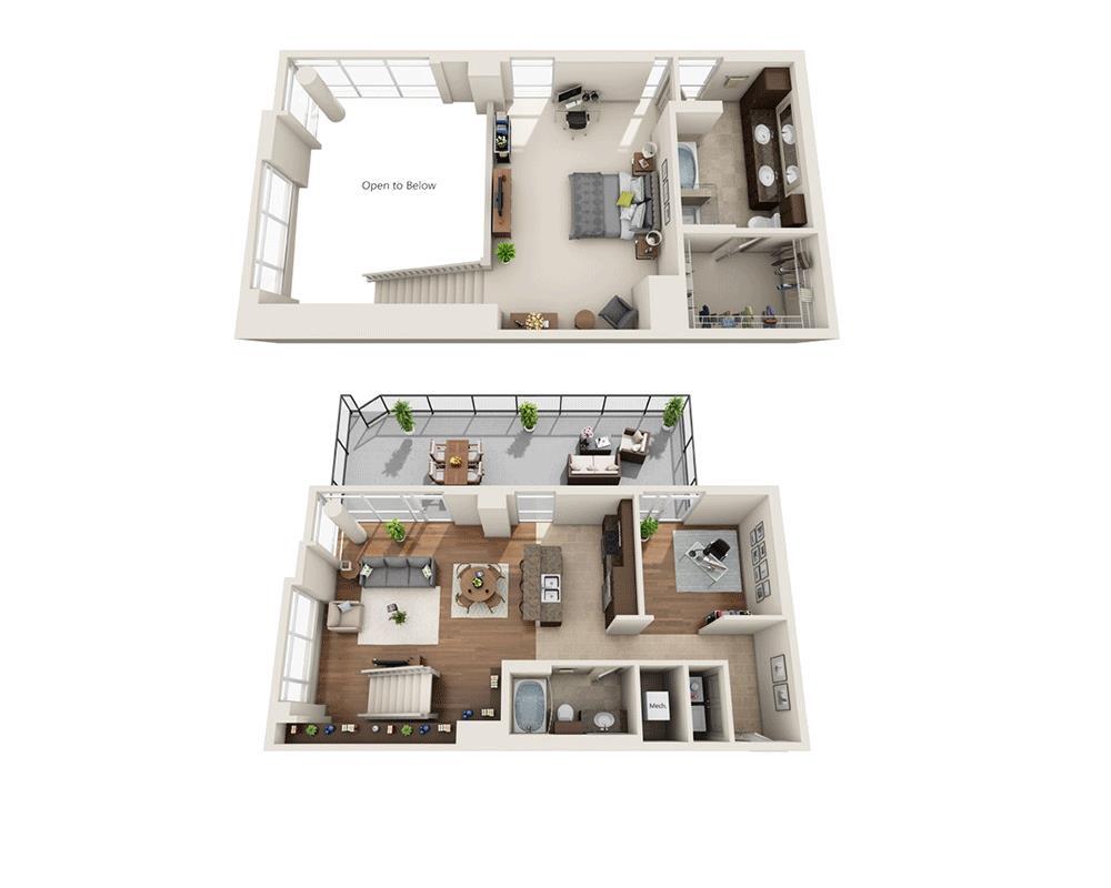 1 Dormitorio, 1 Baño, 822 pies²Galería del Modelo