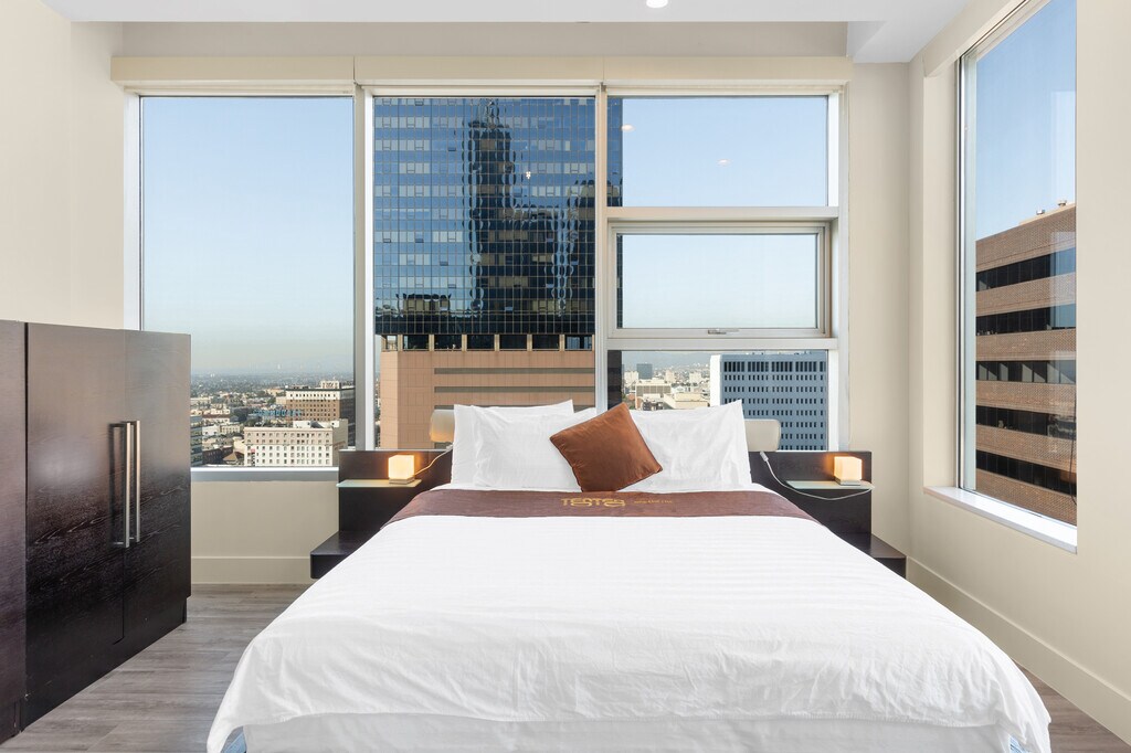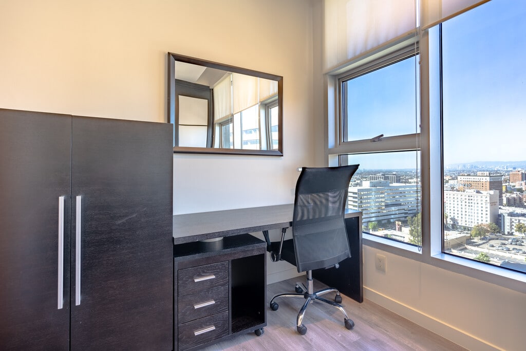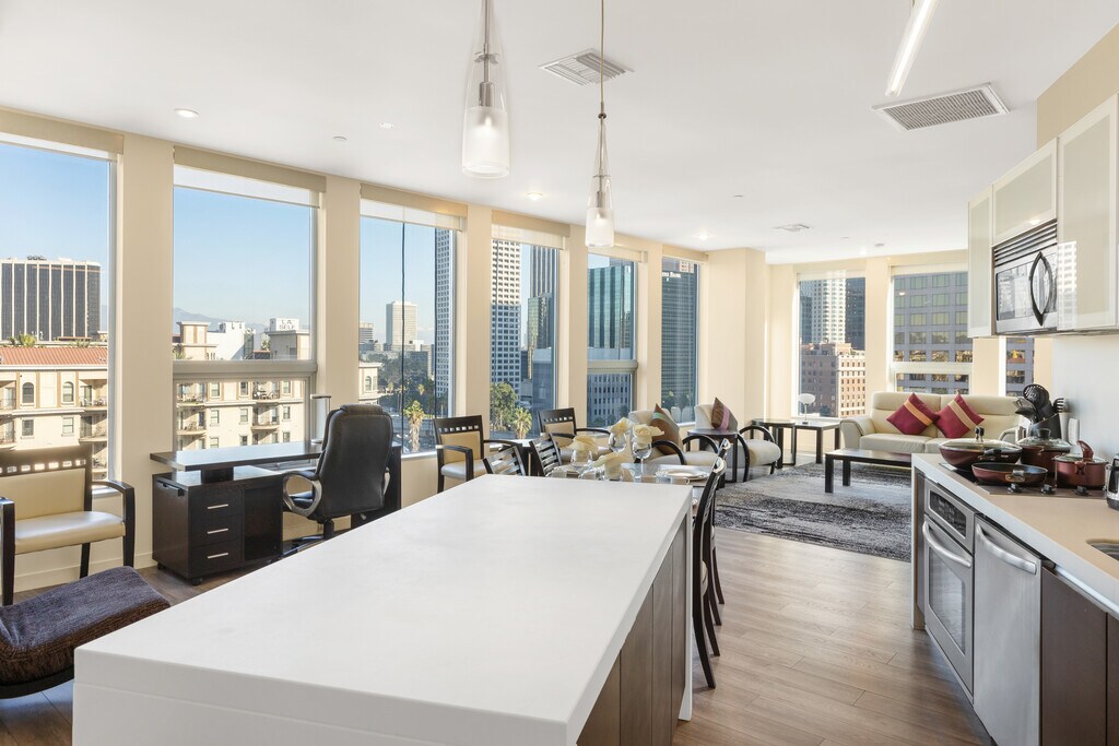 TENTEN Wilshire es un complejo incomparable ubicado en el corazón del centro de Los Ángeles. Como el mejor complejo completamente amueblado para vivir, trabajar y jugar, ofrecemos plazos de arrendamiento flexibles que van desde tan solo un mes hasta 12 meses, lo que hace que sea fácil encontrar el hogar perfecto para cualquier estilo de vida. En TENTEN Wilshire, nos enorgullece ofrecer alojamiento de lujo con todo incluido. Nuestros apartamentos inspirados en un centro turístico están completamente amueblados con utensilios de cocina personalizados, ropa de cama estilo hotel, una lavadora y secadora estándar y DIEZ originales muebles de lujo. Además, Wi-Fi de 1 GB y TV por cable de alta definición están preparados y listos para usar en tu llegada, lo que significa que solo necesitas traer tu maleta. Entendemos la importancia de la seguridad y la comodidad, por lo que nuestros apartamentos de lujo ofrecen acceso a sus propios espacios de estacionamiento seguros y servicio de valet las 24 horas. También tenemos una patrulla de cortesía en la propiedad para garantizar la seguridad y comodidad de nuestros residentes. Nuestro complejo ofrece una variedad de comodidades de cinco estrellas, que incluyen múltiples centros de negocios y salas de conferencias, piscinas grandes y jacuzzis, dos gimnasios con vista al centro de Los Ángeles, salas de proyección y la azotea más grande de América del Norte, completa con áreas de barbacoa, braseros y juegos al aire libre. También organizamos eventos de primera categoría para conectar y por placer, lo que hace que TENTEN Wilshire sea el lugar perfecto para conocer a tu próximo inversor, socio comercial o mejor amigo. Además de ofrecer apartamentos residenciales completamente amueblados, TENTEN Wilshire también ofrece apartamentos para vivir/trabajar que pueden funcionar como espacios de oficina ejecutiva, apartamentos residenciales o una mezcla de los dos. Dependiendo de tu arreglo, nuestros apartamentos pueden ser hasta un 67% deducibles de impuestos. Todo esto está incluido en la única factura que tienes que pagar. Reservar un recorrido por nuestro complejo es rápido y fácil, y estamos disponibles los siete días de la semana. Realiza un recorrido hoy mismo para descubrir las últimas ofertas especiales en tu plano de planta preferido. Para obtener más información, ponte en contacto con nuestra oficina de arrendamiento.