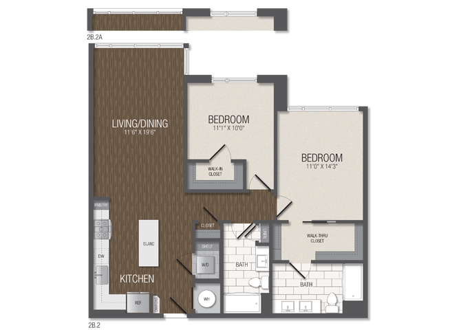 Modelo de apartamento: M.1B4ADesde $1,9741 Dormitorio, 1 Baño, 749 sq ftDisponible Ahora![]()