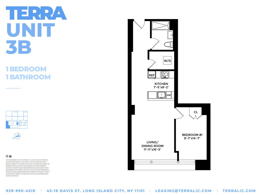 Welcome to Terra LIC – Luxury Living in the Sky at the Heart of Court Square Experience elevated living at Terra LIC, the newest full-service luxury rental development in Long Island City’s vibrant Court Square. Just steps from the E/M/7 subway lines and Trader Joe’s, this elegant 1-bedroom apartment boasts open eastern views and a spacious L-shaped kitchen that seamlessly blends into the living area—perfect for dining, entertaining, and relaxation. At Terra LIC, amenities soar to new heights. All located on the rooftop, residents can enjoy breathtaking Manhattan views while taking advantage of the state-of-the-art fitness center equipped with Technogym equipment, an outdoor terrace with BBQ grills, a chic skylounge featuring a wet bar with free beverages, coffee, and snacks, as well as a dedicated co-working and study area complete with free workstations, a printer, laptops, and a private meeting/dining room. Additionally, the building offers a full sports level in the basement, complete with courts for basketball, pickleball, racquetball, and ping pong. This home is designed for luxurious living, featuring premium Bosch appliances, custom cabinetry, marble accents, and the convenience of an in-unit washer and dryer. The bathroom serves as a serene retreat, outfitted with a TOTO Neorest automatic toilet and an LED-lit European-inspired vanity. Smart home technology, including an efficient central AC system, Hunter Douglas shades, and the LATCH keyless entry and intercom system, adds modern convenience. Ample storage is provided throughout, enhancing both style and functionality. Building Features: Full-service building with doorman & live-in resident manager Rooftop fitness center with Technogym equipment Outdoor terrace with BBQ grills and panoramic views Stylish skylounge with wet bar offering free beverages and snacks Co-working & study area with free workstations, printer, and laptops Private meeting/dining room Sports level with courts for basketball, pickleball, racquetball, and ping pong In-unit washer and dryer & TOTO Neorest automatic toilet LATCH keyless entry & intercom system Custom-designed closets with drawers, rod, and shelves Rentable parking spots & bike storage Amazon Hub package locker Electric car-sharing program