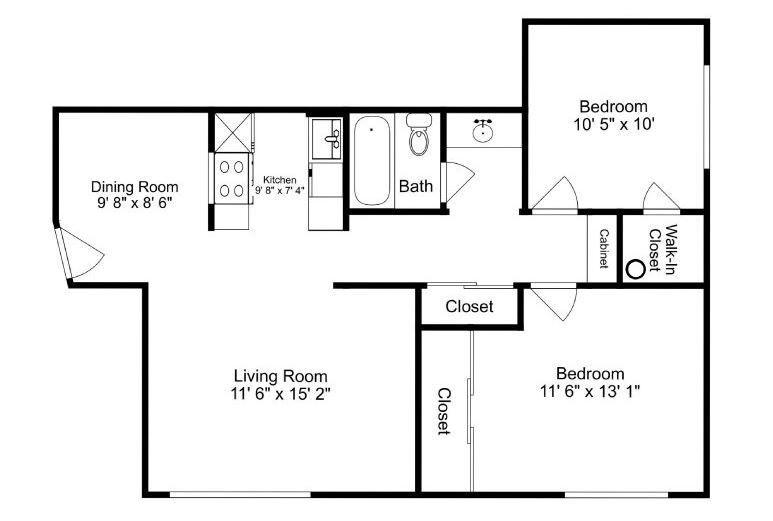 2 Dormitorios, 1 Baño, 850 pies²Galería del Modelo