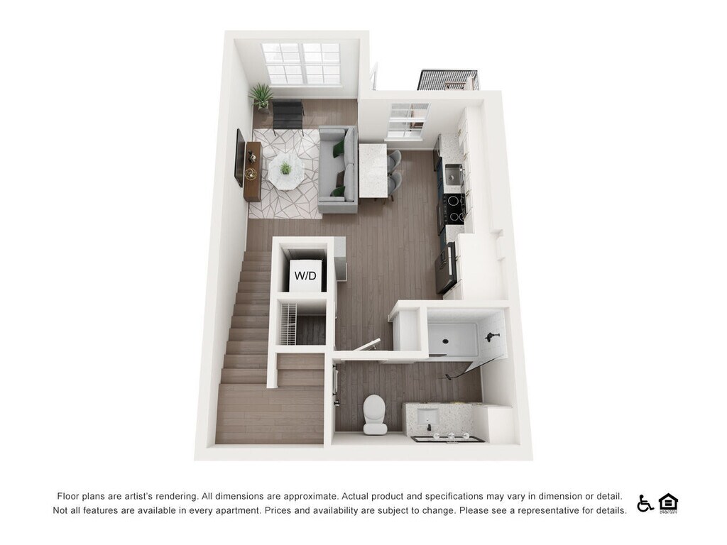 Modelo de apartamento: S3Desde $1,599Estudio, 1 Baño, 617 sq ftDisponible AhoraLos planos son representaciones artísticas. Todas las dimensiones son aproximadas. El producto y las especificaciones reales pueden variar en tamaño o detalle. No todas las características están disponibles en cada vivienda en alquiler. Por favor, consulta con un representante para obtener más detalles.