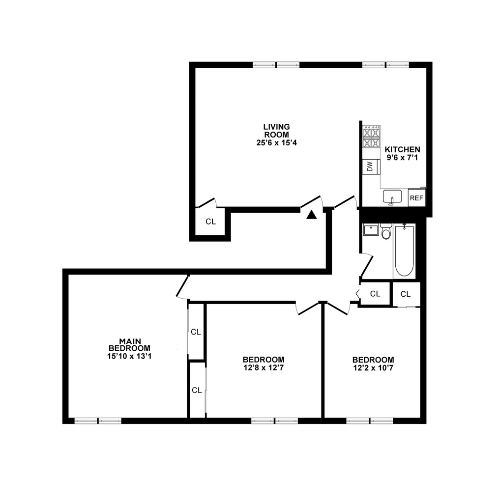 Modelo de apartamento: A1R$2,0591 Dormitorio, 1 Baño, 600 sq ftDisponible Ahora![]()