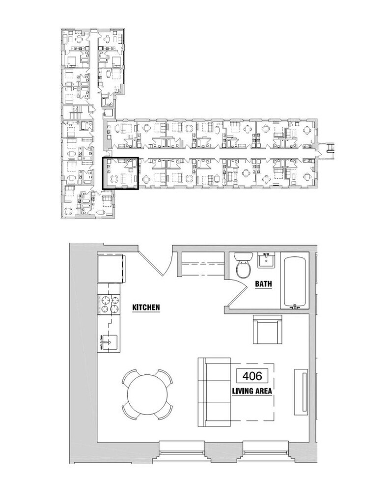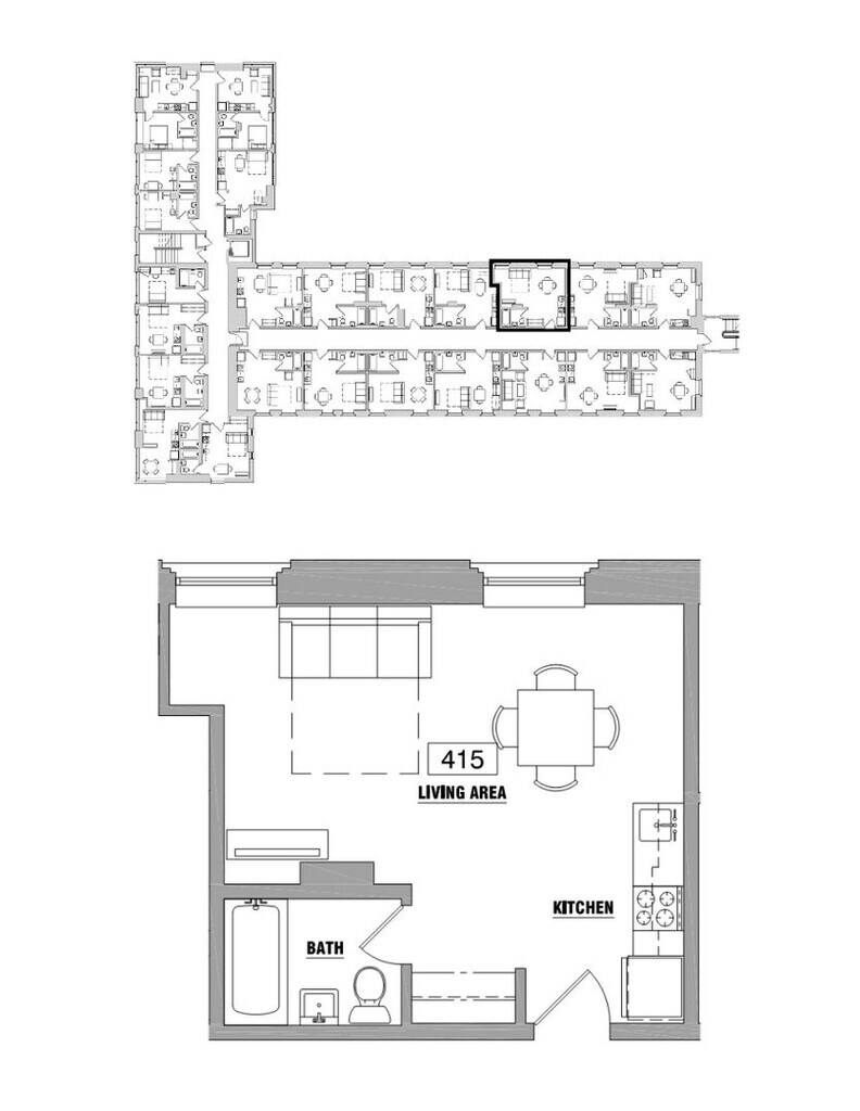 Studio-A - Imagen 10 Unidad de apartamento: 403Modelo de apartamento: Studio-AEstudio, 1 Baño, 268 sq ftDisponible Ahora![]()