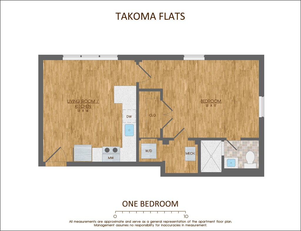 Takoma Flats se encuentra en el Barrio Takoma y el código postal 20012 de Washington, DC.