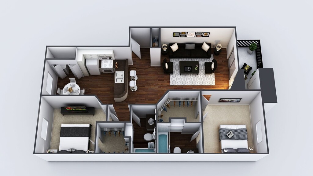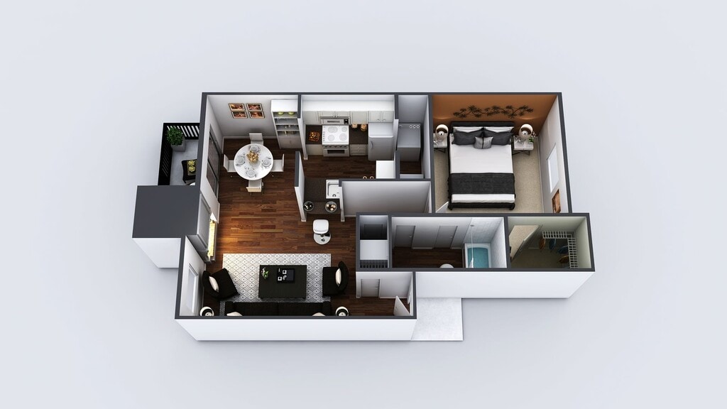 1 Dormitorio, 1 Baño, 700 pies²Disponible AhoraGalería del Modelo