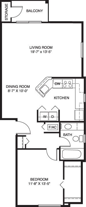 Modelo de apartamento: One Bedroom EndDesde $1,6021 Dormitorio, 1 Baño, 815-851 sq ftDisponible AhoraPlanosFotos![]()