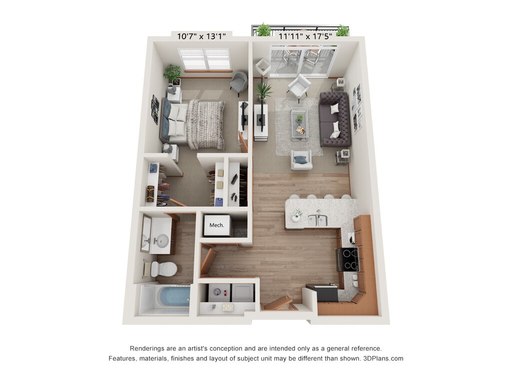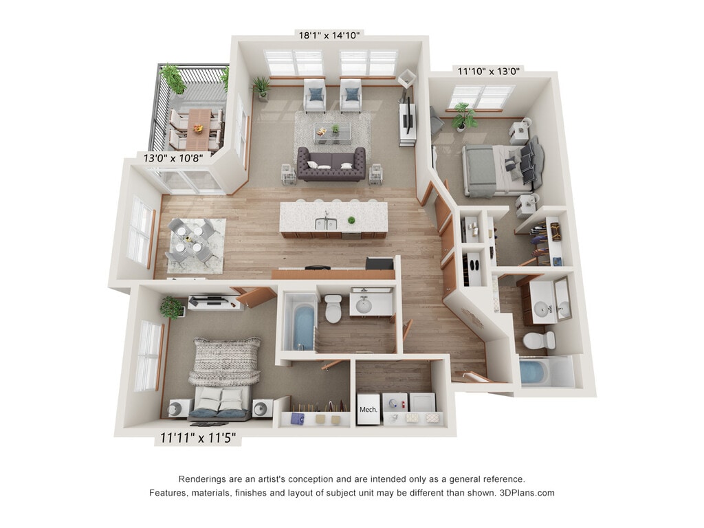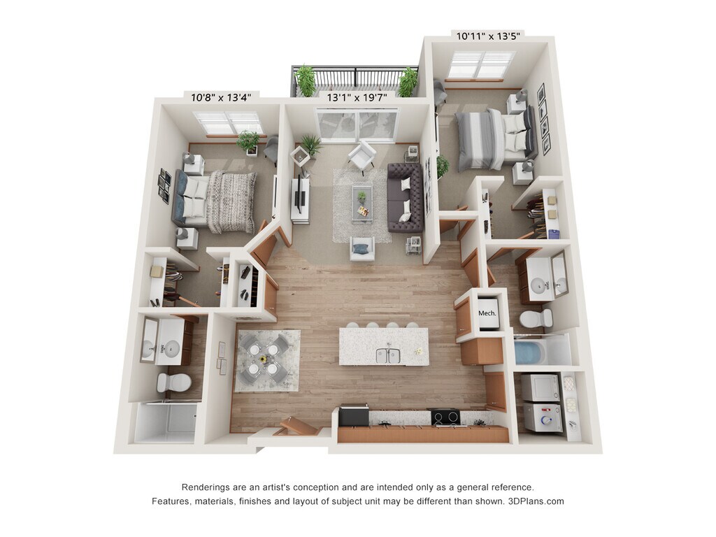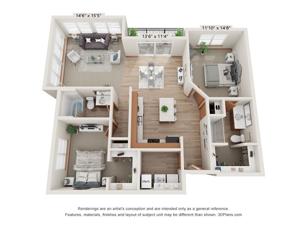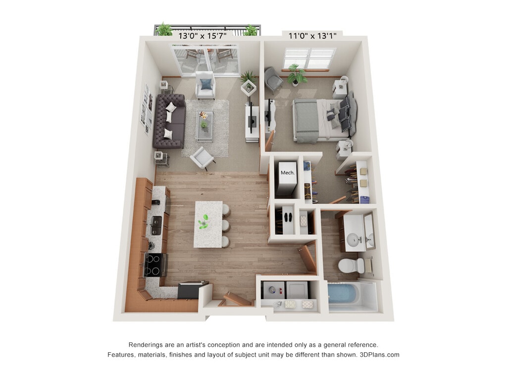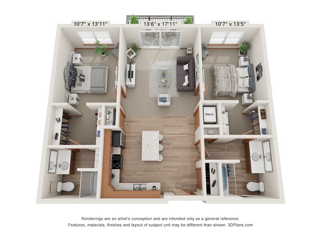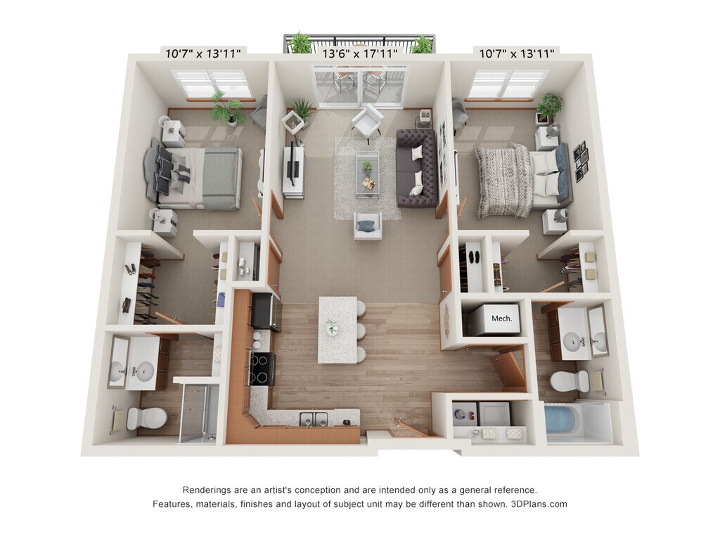Modelo de apartamento: CDesde $1,4501 Dormitorio, 1 Baño, 735 sq ftNo Disponible![]()