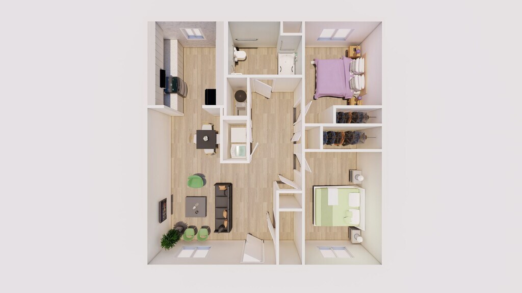 2 Dormitorios, 1 Baño, 1095-1117 pies²Detalles de Diponibilidad