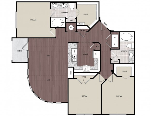 Modelo de apartamento: A3Desde $1,4901 Dormitorio, 1 Baño, 797 sq ftDisponible Ahora![]()