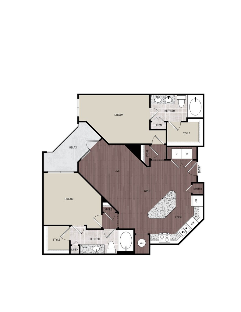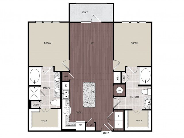 Modelo de apartamento: A5Desde $1,5931 Dormitorio, 1 Baño, 937-950 sq ftDisponible December 8, 2025![]()