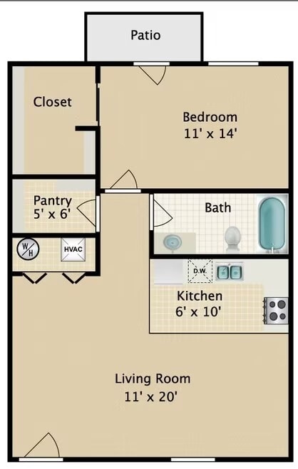 1 Dormitorio, 1 Baño, 750 pies²Disponible AhoraGalería del Modelo