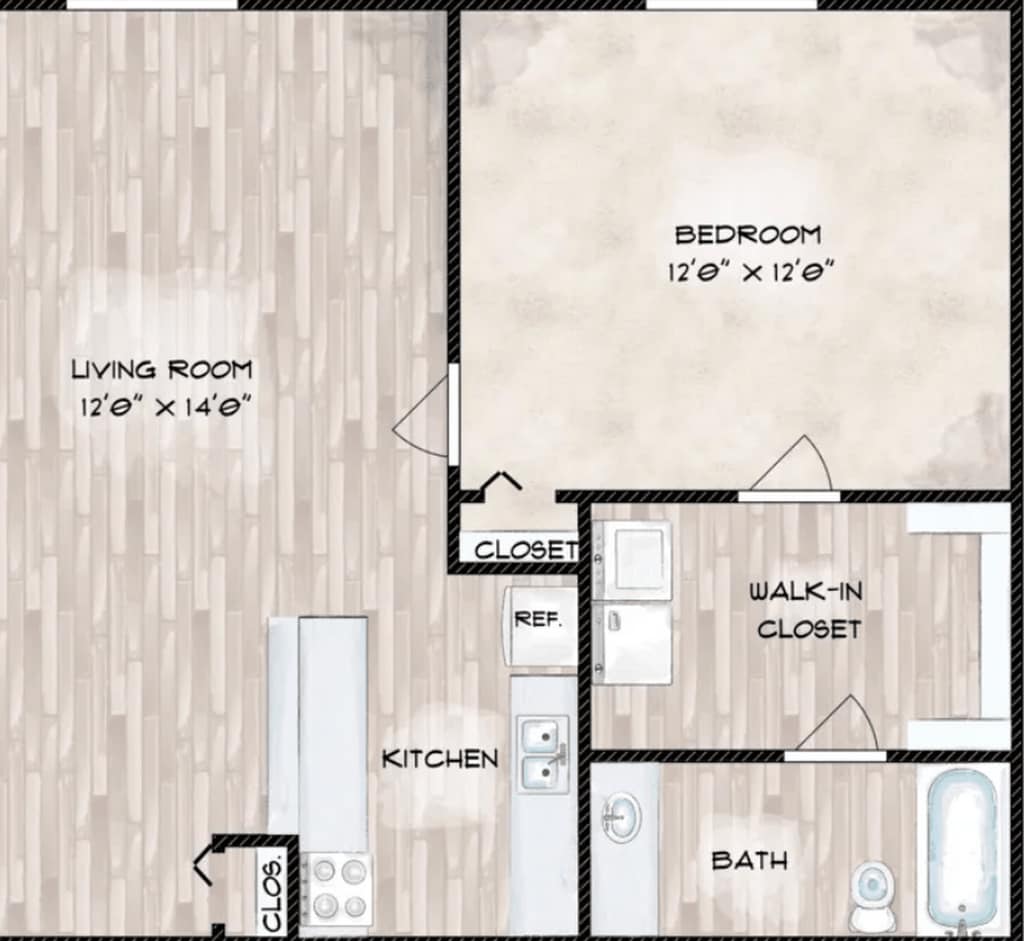 Modelo de apartamento: CapitalLlame para Precios1 Dormitorio, 1 Baño, 586 sq ftNo Disponible![]()