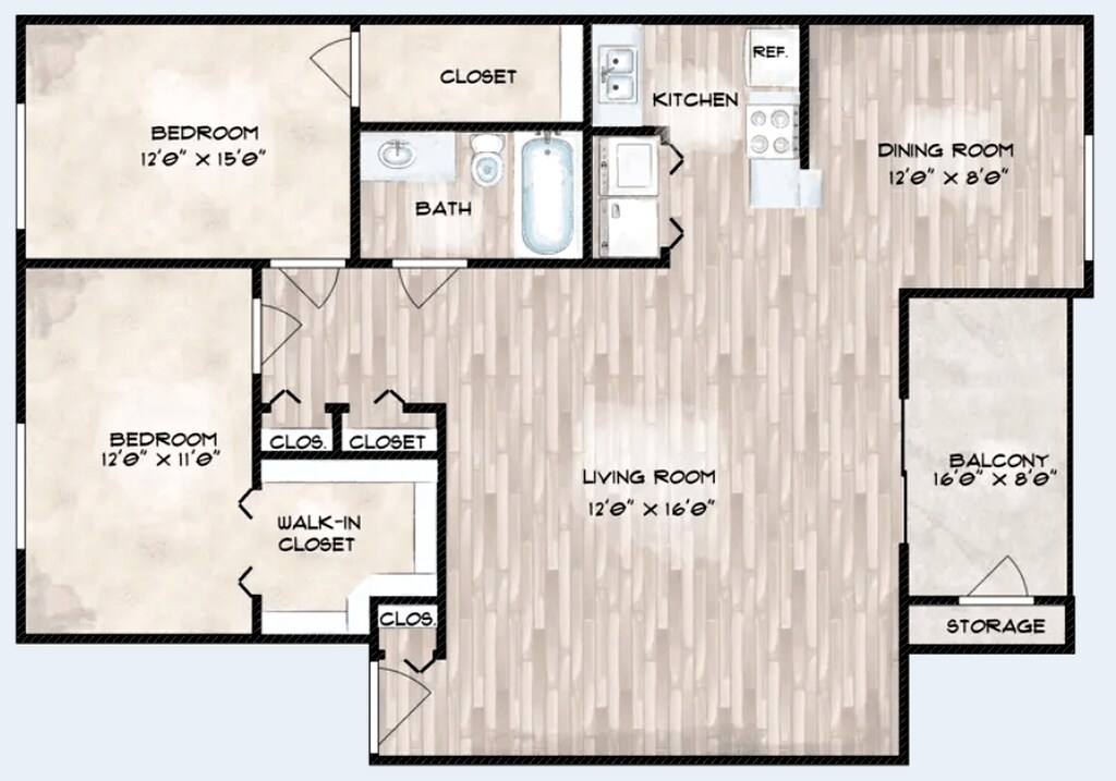 2 Dormitorios, 1 Baño, 1159 pies²Disponible AhoraGalería del Modelo