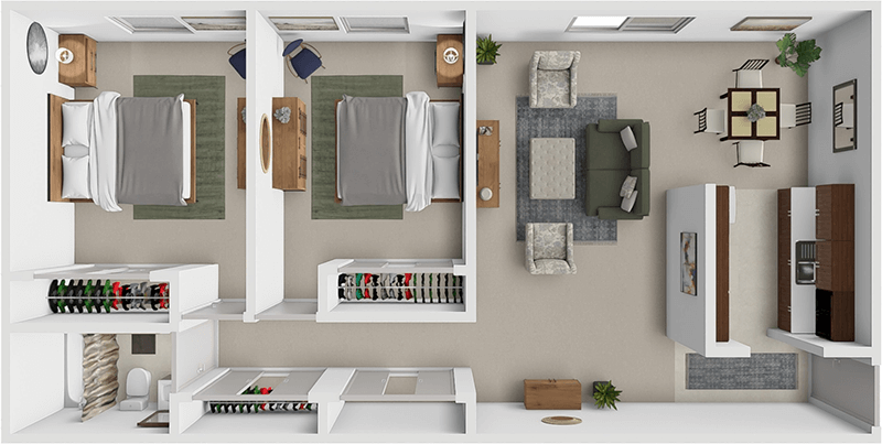 2 Dormitorios, 1 Baño, 820 pies²Disponible AhoraGalería del Modelo