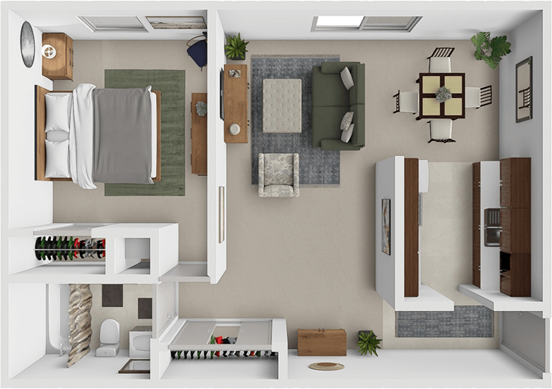 1 Dormitorio, 1 Baño, 620 pies²Disponible AhoraGalería del Modelo