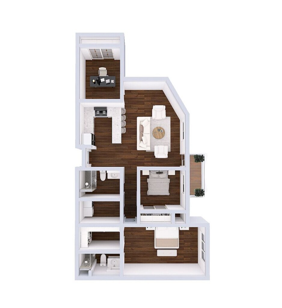 Modelo de apartamento: RiversideDesde $1,2101 Dormitorio, 1 Baño, 829 sq ftDisponible March 19, 2026![]()