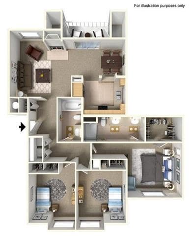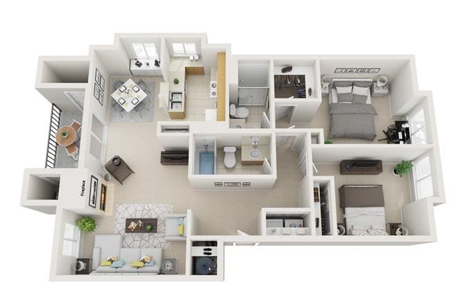 Modelo de apartamento: 1 Bed 1 Bath CreeksideDesde $1,6991 Dormitorio, 1 Baño, 700-735 sq ftDisponible Ahora![]()